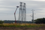 rbeten med att riva kraftledningen i vägreservatet pågår, här alldeles intill Ostkustbanan. (Bild-ID: 55-0100) |