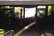Gjutning vid vägporten för GC-vägen mellan Svartbäcken och Röbo på Tycho Hedéns väg omedelbart öster om Röborondellen och alldeles intill platsen där tunneln genom Lötenkullen skall byggas. Vägporten hadde tidigare en öppning mellan de båda körbanorna, men denna gjuts nu igen. (Bild-ID: 55-0103) |