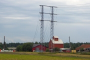Delvis nerriven kraftledning vid Lötens gård. I en första etapp revs kraftledningen mellan Lötens gård och GC-vägen Kastellparken-Lagerlöfsparken. Här korsar nämligen den gamla kraftledningens sträckning och den nya Bärbyledens sträckning varandra. (Bild-ID: 55-0105) |