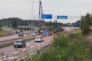Pålning mitt i vägområdet för bropelare till bron för gång- och cykelvägen. (Bild-ID: 55-0117) |