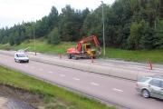 Arbeten i diket på södergående körbana på Tycho Hedéns väg strax öster om Lötenkullen. Ttunneln genom åsen skall byggas i två etapper, först det norra tunnelröret, sedan det södra. Under tiden det norra röret byggs kommer all trafik att gå på den södra körbanan, där då också en del av diket måste tas i anspråk. (Bild-ID: 55-0107) |