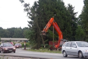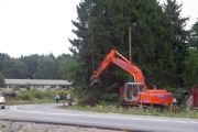 Grävmaskenen tar tag om stammen och bryter av trädet som före detta hade sågats av delvis med motorsåg. (Bild-ID: 55-0110) |