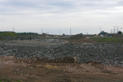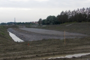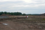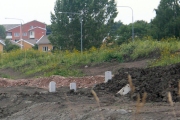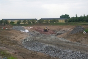 Ett lager av grovt stenkross har lagts ut i gropen strax söder om Råbyvägen. (Bild-ID: 55-0120) |