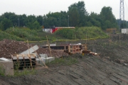 Norra brofästet på bron för Råbyvägen håller på att byggas. (Bild-ID: 55-0121) |
