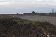 Vy österut från GC-vägen.Bakom grusvallen mitt i bild skall en tunnel för GC-vägen under Bärbyleden byggas. (Bild-ID: 55-0126) |