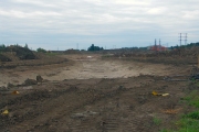 Arbeten på platsen där rondellen för korsningen mellan Österleden och Bärbyleden. Vy söderut från Österledens förbifartsväg. (Bild-ID: 55-0134) |